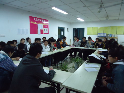 知行社、党员工作站、10级各班预备党员、发展对象、入党积极分子参与的关于“两会”的研讨会于梅三五楼党员工作室顺利举行。本次研讨会由知行社成员张阳主持,知行社副社长刘治伟到场参加了本次会议。