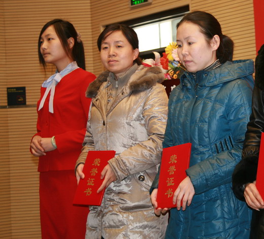 李秀老师荣获校“先进妇女工作者”荣誉称号;樊秀娟老师荣获“妇女工作积极分子”称号;张丹获得校“十佳女大学生”、唐玉华获得校“优秀女学生干部”荣誉称号。主席台领导分别向受到表彰个人颁奖。