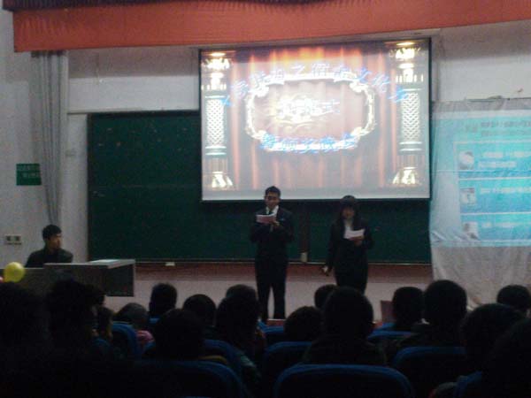 联合九个学院在外文学院报告厅B102举行了宿舍文化节颁奖仪式,蒋恺、王树敏、李彬、张琪、李 世航、王聪、汤志鹏等各学院学生会主席团成员出席了本次仪式。