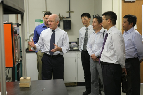 访问团成员在系主任James A. Milke教授带领下参观实验室